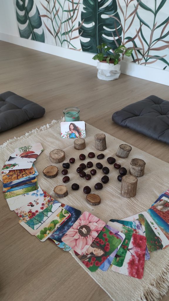 Recorridos sensoriales de reconexión, ecomeditaciones de reconexión, cantos de conexión, encuentros con la Naturaleza como maestra + ceremonia del cacao.